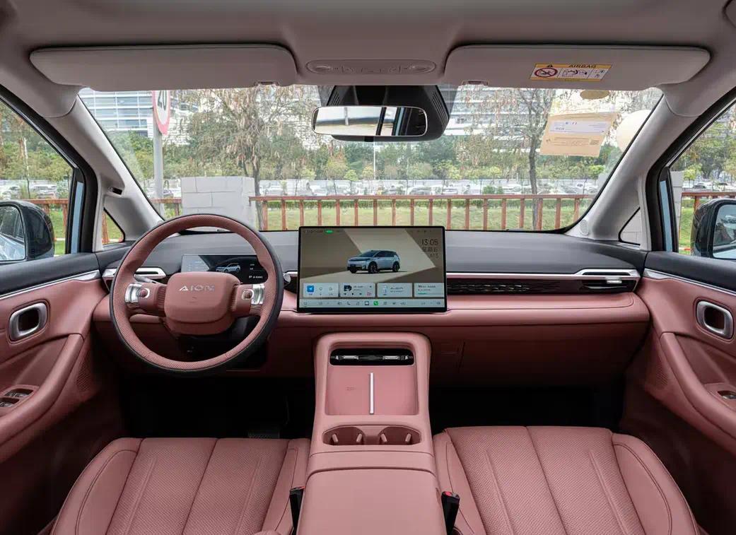 内饰部分,AION N60车内保持了当下流行的简约风格,采用了双辐式多功能方向盘、液晶仪表以及15.6英寸2.5K大屏,车机内置ADiGO 6.0人机交互系统。中控区域提供一个50W的无线充电面板,中央扶手下方可以选装6.6L车载冰箱(-15-50℃)。此外,车内还配备了一块2.38㎡的全景天幕并带有电动遮阳帘。