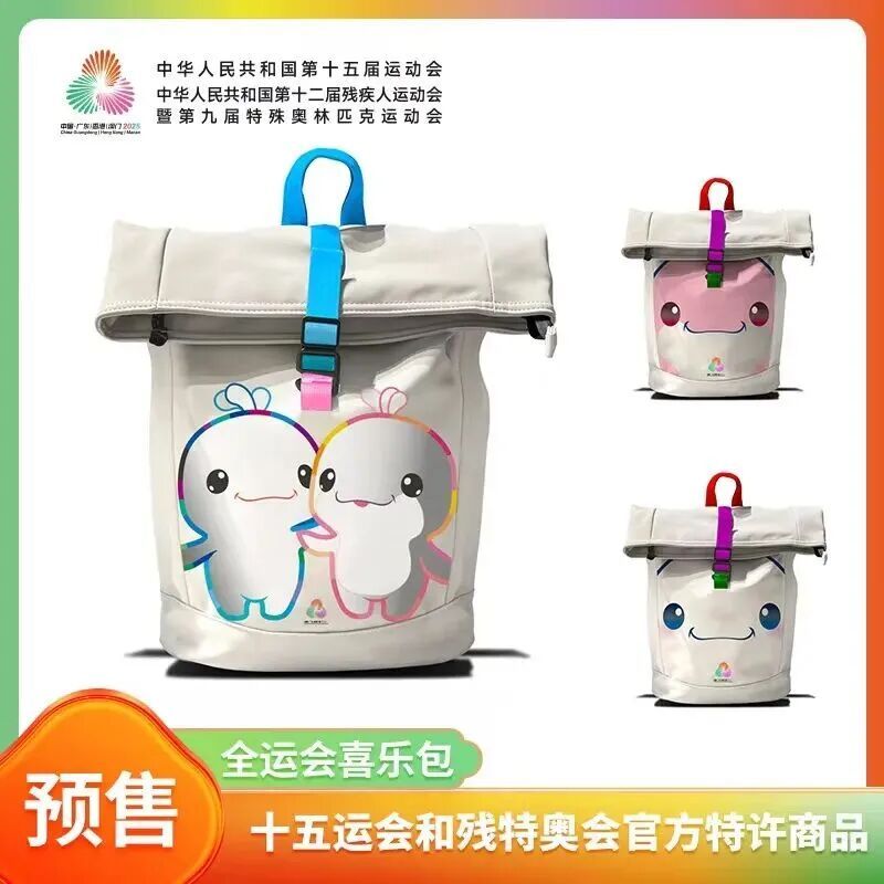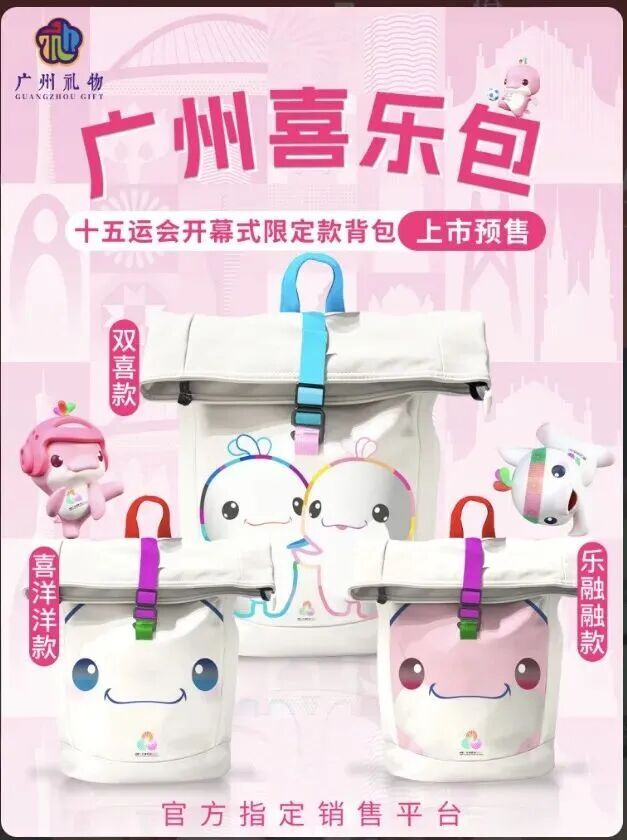 “广州喜乐包”的命名灵感源自十五运会吉祥物“喜洋洋”“乐融融”,设计紧扣赛事主题与湾区文化特色。产品共推出四款,其中一款为运动员专属限定款,另外三款分别以“喜洋洋”单款、“乐融融”单款、“喜洋洋乐融融”合体为设计亮点,造型萌趣鲜活,辨识度拉满。